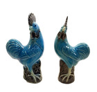 Antique Chinese Turquoise Aubergine Porcelain Glazed Pair Of Rooster Figurines