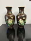 Pair Of Antique Chinese Cloisonne Flower Floral Vases 7.25"h