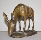 Vintage Solid Brass Deer Doe Fawn Grazing Eating Decor Figurine 4.5" Mcm Deer