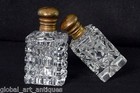 Pair Of Vintage Unique White Cut Glass Unique Shape Perfume Bottle. G14-74
