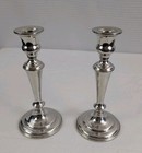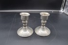 Pair Of Weighted Pewter Candlesticks 4.75" Base 4"