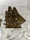 Nice Vintage Pair Of Brass Sailing Ship Bookends