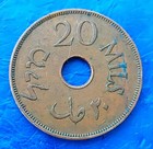 Palestine British Mandate Coin 20 Mils 1941 Km5 Copper Nickel Vf+ 3 Languages Kd