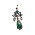 Beautiful!! Antique Natural Emerald Silver & 11k Gold Diamond Pendant