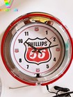 15" Neon Clock Phillips 66 Oil Gas Gasoline Double Tube Sign Light Lamp Garage