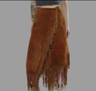 Vintage Hb Native American Southwestern Tan Leather Fringe Wrap Skirt