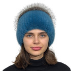 Womens Real Fur Hat Mink Silver Fox Pom Pom Knitted Beanie Winter Warm Handmade