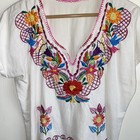 Puebla Mexican Hippie Peasant Embroidered Blouse Top Floral White Cotton Size M