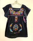 Traditional Mexican Embroidered Floral Top Blouse Handmade Peasant Boho Large