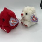2 Puffkins Valentine's Day Plush Hugs & Kisses 5" Red White Bears Hearts Nwt
