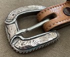 Vintage Vincenza Sterling Silver Ranger Belt Buckle Set & Calfskin Size 32 Belt