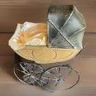 Vintage Tin Metal Doll Carriage Stroller With Doll As Is