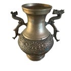 Rare 8” Vintage Brass Vase/urn With Dragon Handles Floral Design