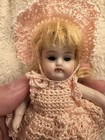 Antique 4.5” All Bisque German Doll Kestner? Sleep Eyes Orig Wig Crocheted Dress