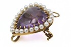 Rare Antique French Victorian 14k Gold Polished Amethyst Heart Pin Pendant