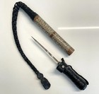 Rare Antique Moroccan Camel Whip Secret Hidden Knife Dagger Pearl Inlaid Leather
