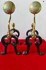 Pair Of Antique Victorian Fire Dogs / Andirons In Cast Iron & Brass Rare One