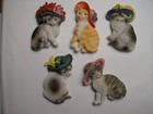 6 Vintage Ceramic Cat Refrigerator Magnets 3d Kitten Taiwan