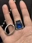 Avon Necklace Earrings Ring Set Dark Blue Cabochon Silver Tone Parure Set