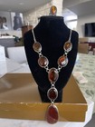 Vintage Set Of Matching Sterling Colorful Earrings Necklace Ring & Free Shipping