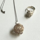 Vintage Necklace And Ring Set. Silver Plated. Floral Style.
