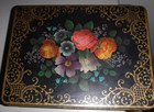 Vintage Tin Floral Made In England 9" X 7" Floral Pattern On Top Gold Trim