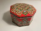 Vtg English Octagonal Metal Tin Red & Multi Color Paisley Design England