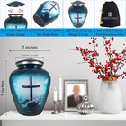 Handmade Blue Urn For Human Ashes Full Size Cross Cremation Urn For Ashes