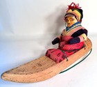 Vintage '64 Lapland Man Doll In Canoe 14" Wood Cloth, Ethnic Sami Figure Carving