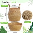 Seagrass Belly Basket, Set Of 2 Woven Plant Pot Holder Handmade Home Decor Fo...
