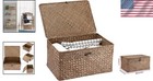 Natural Seagrass Woven Storage Baskets Set Of 2 W/lids Coffee Brown Stackable