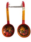 Vintage Russian Khokhloma Hand Painted Laquered Wood Ladle Spoon Set Of 2 Large