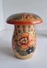 Vintage Russian wooden Carved Mushroom Hand Painted Floral Jars Ussr Set Of 2