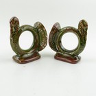 Set Of 2 Vintage Thanksgiving Turkey Ceramic Napkin Rings - Green - Drip Glaze