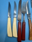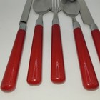 (5) Red Bakelite Handle ~ Fork- Knife-teaspoon ~ Stainless ~ Mixed Lot