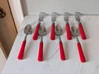 #w Lot Of 6 Pcs Of Red Bakelite Catalin Spoons, Forks, Knives Stainless 1950's