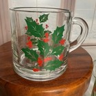 Set Of 8 Vintage Glass Christmas Holly Berry Drinking Glasses Tumblers 7.5 Oz