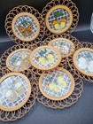 Vintage Retro Pressed Butterfly & Flower Rattan & Glass Coasters Boho Set Of 8