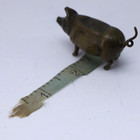 Antique Figural Brass Pig Measuring Tape Tail Wind Sewing Collectible