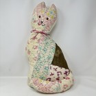 Vintage Handmade Patchwork Quilted Cat Stuffed Pillow Shabby Chic Primitive Old