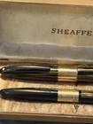 Vintage Sheaffer Snorkel Pen And Pencil Set Black Gold Cap With Original Box Usa