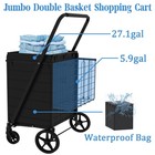 Extra Large Folding Shopping Cart,330lbs Grocery Cart,double Basket,swivel Wheel