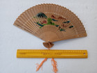 Vintage Ladies Folding Brise Hand Fan Japanese Pierced Sticks Silk Hand Painted