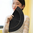 Silk Folding Fan, Bamboo Wood Hand Fan Japanese Vintage Retro Style Black
