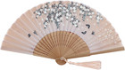 Silk Japanese Folding Fan - Bamboo Handheld Vintage Style, 14.5x8.2"