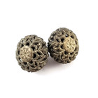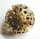 Vintage Cricket Cage Type Ball Openwork Antique Metal Flower Button 103-00