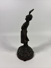 Vintage/antique Bronze Statue Of Dutch Girl Woman Lady Dancing With Tambourine