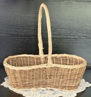 Vtg Wicker Rattan 2-handle Lidded Flower Lidded European Market Basket Gathering
