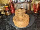 Vintage Shallow Round Wicker Baskets 10” And 9.5” Hong Kong