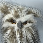 Realistic Feathered Standing White/gray Owl Figurine 7"